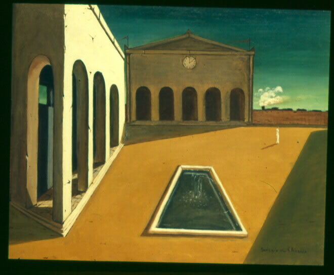 ![]() Джорджо де Кирико. Автопортрет http://izoselfportrait.narod.ru/photoalbum31.html Джорджо де Кирико (Giorgio de Chirico) (1888–1978), итальянский художник и теоретик искусства, считается одним из предвестников сюрреализма в современной живописи. Увлечение философией Ф.Ницше и аллегорической живописью А.Бёклина способствовало появлению у де Кирико интереса не к принципам академического реализма, а к толкованию загадочных символов, снов и галлюцинаций. Между 1908 и 1917 де Кирико создал свои самые значительные произведения – серию видов пустынных городских площадей и натюрмортов, состоящих из совершенно не связанных друг с другом предметов. Даже названия этих работ, такие, как "Ностальгия по бесконечности" (1913) и "Меланхолия улицы"(1914), указывают на стремление автора наполнить самые обыденные ситуации ощущением опасности и ирреальности. В 1915–1919 Джорджо де Кирико и Карло Карра сформулировали теоретическое обоснование своего искусства, положив начало течению метафизической живописи в итальянском искусстве. http://smallbay.ru/chirico.html Наиболее известен « метафизический » период творчества Кирико (1909-1919), когда его работы «Ностальгия по бесконечности» (1911), «Тайна и меланхолия улиц» (1914), «Ностальгия поэта» (1914), «Метафизический интерьер» (1917 привлекли внимание Ива Танги, Сальвадора Дали, Рене Магритта. ttp://ru.wikipedia.org ![]() Меланхолия и мистерия улицы (1914) http://lerparacrer.files.wordpress.com/2007/11/chirico.jpg ![]() 1) Меланхолия и мистерия улицы (1914) http://smallbay.ru 2) Меланхолия и тайна улицы (1914) http://www.artprojekt.ru Меланхолия и тайна улицы (1913) Де Кирико - поэт города, но города очень странного. Совершенно очевидно, что образы его городских пейзажей имеют какое-то личное значение для художника, с навязчивым постоянством вновь и вновь возвращающегося к ним. На картине "Меланхолия и тайна улицы" (1914) мы видим характерные аркады строений, уводящих улицу в бесконечность. Длинные резкие тени создают тревожную атмосферу. Необычной для художника деталью здесь является человеческая фигура; дважды необычной - то, что она движется. Еще одна странность - это открытый пустой трейлер, напоминающий ловушку для девочки, которая бежит по направлению к тени, отбрасываемой гигантской статуей. http://surreal.int.ru/about_.html ![]() 1) Итальянская площадь (Piazza d'Italia) (1913) http://www.abcgallery.com 2) Фрагмент из картины де Кирико http://www.artlebedev.com Итальянская площадь Для "метафизического" периода де Кирико характерен набор излюбленных образов - это локомотивы, статуи, силуэты людей или предметов, заключенные в рамки городских площадей. В качестве примера приводим картину "Итальянская площадь". Изображенный на заднем плане поезд - один из навязчивых образов художника, связанный с темой встреч и прощаний. Он будет многократно возникать на его полотнах - таких, как "Меланхолия Турина". Очевидно, автору не давала покоя тема встреч и прощаний. При этом мотив встречи может звучать у него как явно (та же "Меланхолия Турина"), так и завуалированно ("Неопределенность поэта", 1913). Многие названия картин художника как бы заранее настраивают зрителя на определенный лад - "Радость возвращения", "Тоска расставания", "Возвращение Улисса". http://surreal.int.ru/about_.html Если вам « Итальянская площадь » нравится, то может желаете познакомится и с такой темой как La Cite ideale - Идеальный город ![]() 1) The Enigma of the Hour (1911) http://www.abcgallery.com http://en.wikipedia.org 2) Возмездие предсказателя (The Soothsayer's Recompense) (1913) http://www.abcgallery.com ![]() 1) Наслаж
