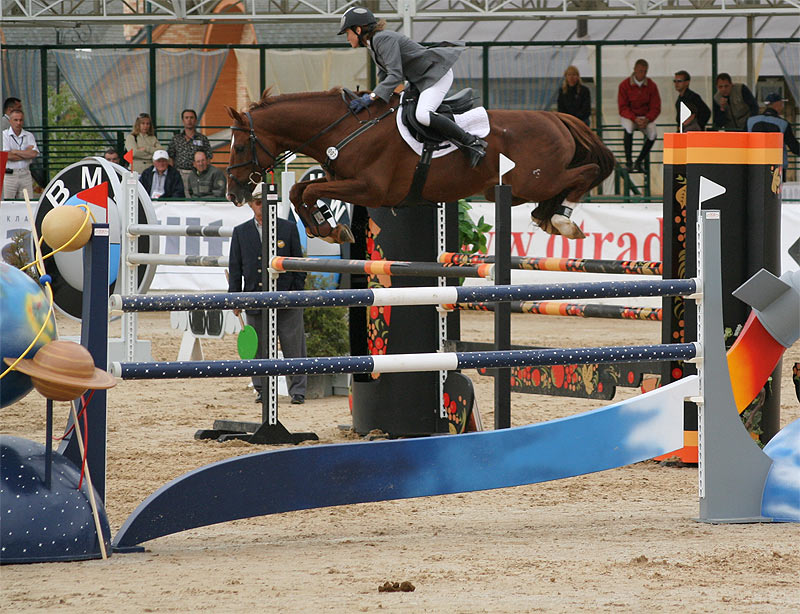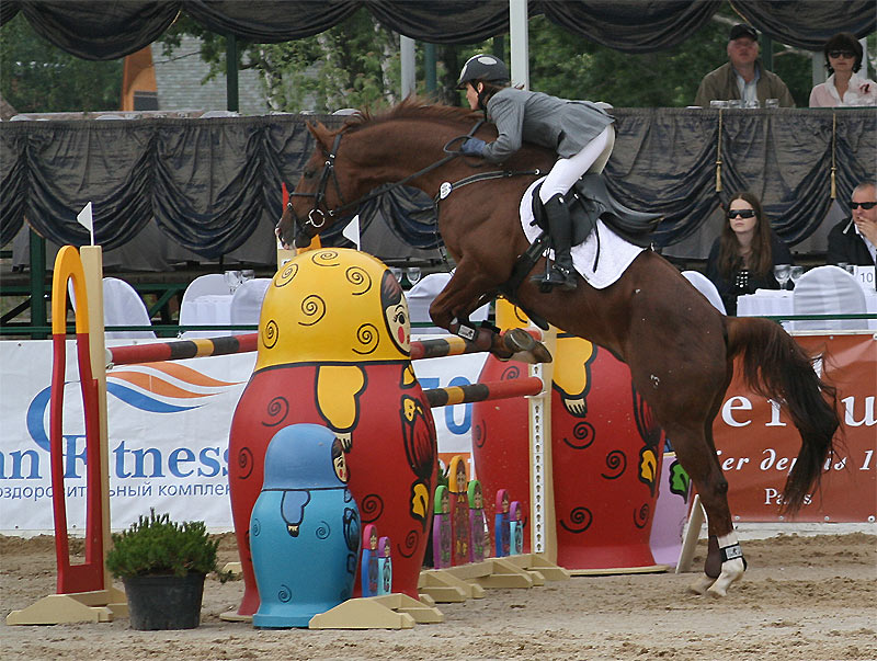 И теперь по результатам ЧР отчетик:)) 130 см.для лошадей 6-7 лет ст.238.2.1. табл.А 1м. из 18 участников :Оптика-00 под седлом М.Атояна 0 ш.о. 53,17 с. 2м. Рамзес-00 от Разгадчика под седлом О. Чечиной 0 ш.о.55,77 с. 7м. Эверест-01 от Экзекутора под седлом А. Варнавского 4 ш.о. 57,49 с. 11м. Резидент-00 от Рубина под седлом О. Чечиной 8 ш.о. 53,59 с. 15м. трак-буд. Орхидея-01 от Опеля под седлом М.Атояна 12 ш.о. 56,59 с. 130 см. лошади 6-7 лет. ст.238.2.1. табл.А: 1м. из 21 участника: Оптика-00 под седлом М. Атояна 0 ш.о.53,17с. 2м. Рамзес-00 под седлом О. Чечиной 0 ш.о. 55,77с. 9м. Эверест-01 под седлом А.Варнавского 4 ш.о. 57,49с. 13м. Резидент-00 под седлом О.Чечиной 8 ш.о.53,59с. 17м. Орхидея-01 под седлом М.Атояна 12 ш.о. 56,59 125-130см. для лошадей 6-7 лет. ст. 274.5.3., табл.А: 1м. из 21 участника Оптика-00 под седлом М. Атояна 0 ш.о. 51,72 перепр.0 ш.о. 24,56с. 3м. Резидент-00 под седлом О.Чечиной 0 ш.о. 49,02 перепр. 0 ш.о.26,17с. 4м. Рамзес-00 под седлом О. Чечиной 0 ш.о. 49,05 перепр. 4 ш.о. 25,68с. 11м. Орхидея-01 под седлом М.Атояна 4 ш.о. 51,36с. 19м. Эверест-01 под седлом А.Варнавского 12 ш.о.50,57с. Приз пам. Т. Куликовской 130-135см. для лошадей 6-7 лет: 1м.из 20 участников Оптика-00 под седлом М. Атояна 0 ш.о.0 ш.о. 67,91с. перепр. 0 ш.о. 31,83с. 2м. Рамзес-00 под седлом О. Чечиной 0 ш.о.68,61с., перепр. 33,23с. 3м.Резидент-00 под седлом О.Чечиной 0 ш.о.70,37с., перепр. 0 ш.о. 34,02с. 14м. Орхидея-01 под седлом М.Атояна 8 ш.о., 71,53с. 17м.Эверест-01 под седлом А.Варнавского 13 ш.о., 73,98с. В общем, молодые российские лошади рулят!! "охотничий" 140см. ст.271,табл.С: 3м. из 36 участников Гром-99 под седлом Н.Симонии 57,38с. 29м. Рэзак-97 от Рэтива под седлом П.Лантуха 91,28с. 140см. ст.274.5.3. табл.А: 9м. из 34 участников Гром-99 под седлом Н.Симонии 8 ш.о.,51,52с. 32м. Рэзак-97 под седлом П.Лантуха 28 шо.,54,19с. 140см. на чистоту и резвость: 1м. из 12 участников Гром-99 под седлом Н.Симонии 0 ш.о. 62,28с. 145 см. ." с решающих гитом"на призы комп. Афина Паллада: 2м. из 30 участников Рапорт-97 от Пафоса под седлом Л. Кочетовой 0 ш.о. 65,20с., перепр. 0 ш.о.39,67с. 3м. Гром-99 под седлом Н.Симонии 0 ш.о 68,68с.,перепр.0 ш.о. 43,43с. По результатам личного первенства ЧР, группа Б, первое место в нём заняла Н.Симония на Громе-99:) 145см 1м. из 18 участников Рапорт-97 под седлом Л. Кочетовой, 68,02с. Гран-При до 150см.: 5м. из 17 участников Рапорт-97 под седлом Л. Кочетовой 4 ш.о. 72,88с. 17 м. Неизбежный-93 от Нечетного под седлом Е.Крючковой 16 ш.о.,81,71с. Вроде всё:)) |