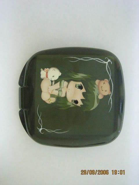 Решила выложить работы немного из другой области. В хронологическом порядке. Все рисунки выполнены аэрогрофом. Ниже подпишу на каких поверхностях. Эскизы не мои, но кто "мацал" аэрограф и пробовал им что-нибудь нарисовать, знает, что в этом деле брать взаймы чужой рисунок - обычное дело. Итак, на освоение этого этапа у меня ушло полгода. Полгода и я сдалась . Задняя крышка АКБ какого-то телефона. Какого не знаю, ибо выкопала ее в куче других разных всяких крышечек. Чьей руки картина не помню, но там по задумке еще на заднем плане крохотный дракончик должен был быть... , от которого я благополучно отказалась=) ![]() А это живой самсунг. За него мне заплатили денюжкой. Разработка ромашек за мной =)) У меня после той работы остался CD который сам весь и вся его коробка в "пробе пера".. в ромашках вообщем =) (ему оч идет - он зелененький, ромашки белые) К сожалению четкость страдает - фоткали на первый подвернувшийся телефон, который чего-то решил сфокусироваться на столе ) 0.о ![]() А еще развлекалась и таким: стразики на телефон. Черт его знает, какая тут художественная ценность. Эскиз выполнен мною под чутким руководством заказчика. ![]() Это тоже на крышечку. Парень своей девушке подарить хотел. Надпись именно такую попросил он. Писать кисточкой оказалось неожиданно сложно. Клиент остался доволен. ![]() А это моя пудреница =) До сих пор жива! Больше года ей... всмысле зеркальцу=) Картинка одной моей знакомой. ![]() Еще одна работа стразами. К сожалению, она только на фото и осталась. ![]() А это крышка ноута. Сори за газеты на заднем плане... Так обрадовалась когда ее доделала, что на остальное было поф. Тут она еще не лакированная. В лаке вообще сказка. ![]() |
