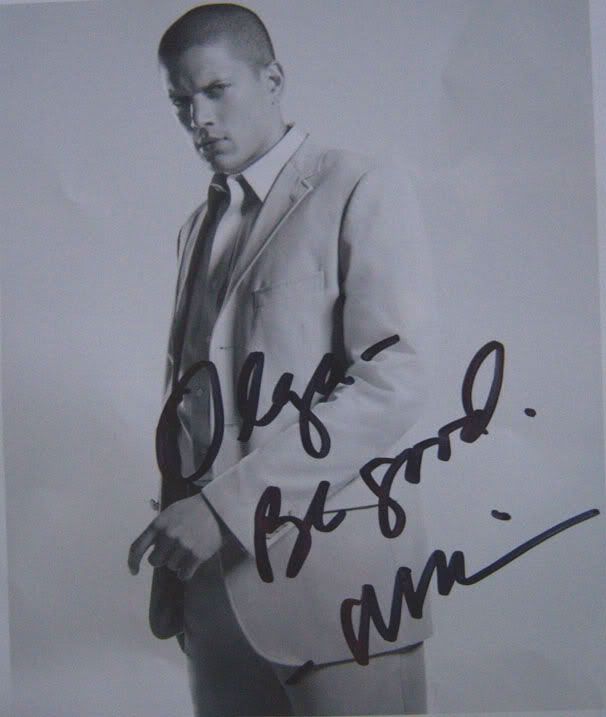 девченки!!! короче я не знала куда ето выставить, так что выставляю тут! я думаю вы знаете Вентворс Миллер, актер из сериала "Побег из тюрьмы" (Prison Break). Короче, летом я написала в Williams Morris агенство, понаписала там не помню чего! Он же на половину русский. Попросила его автограф. Сегодня прихожу домой, а мне мама передаёт письмецо! Фотка и его подпись !!! Короче моя мечта сбылась!!!!! Я его просто обожаю!!!P.S. он как знал что я BAD!